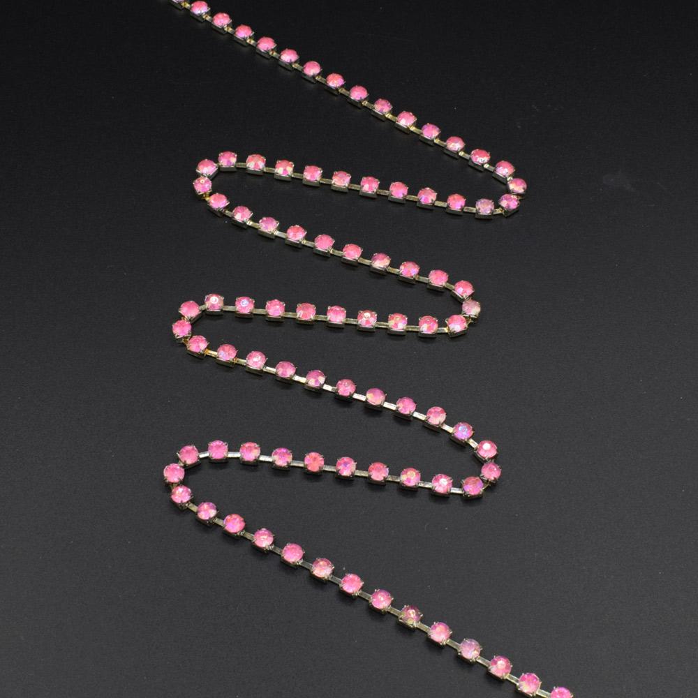 Тесьма со стразами 4 мм радуга 3 мм розовая серебро купить в розницу и оптом