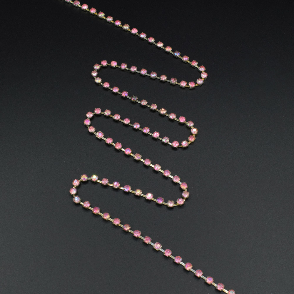 Тесьма со стразами 4 мм радуга 3 мм розовая светлая серебро купить в розницу и оптом