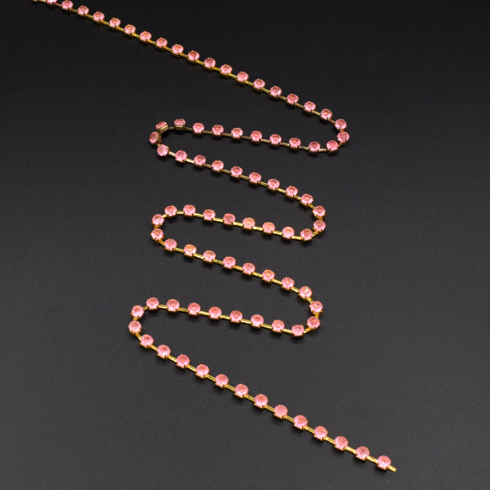 Тесьма со стразами 4 мм радуга 3 мм розовая золото купить в розницу и оптом