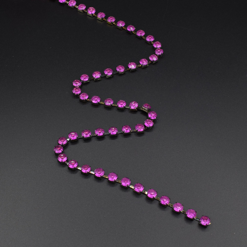 Тесьма со стразами 6х6 мм фиолетовая купить в розницу и оптом