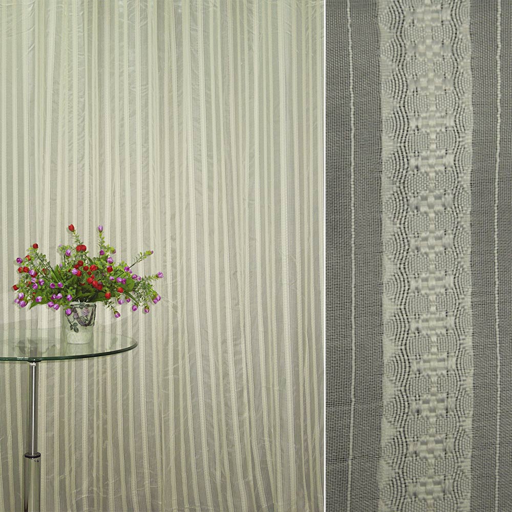 Лен гардинный полоса орнамент, ванильный, ш.280 купить в розницу и оптом