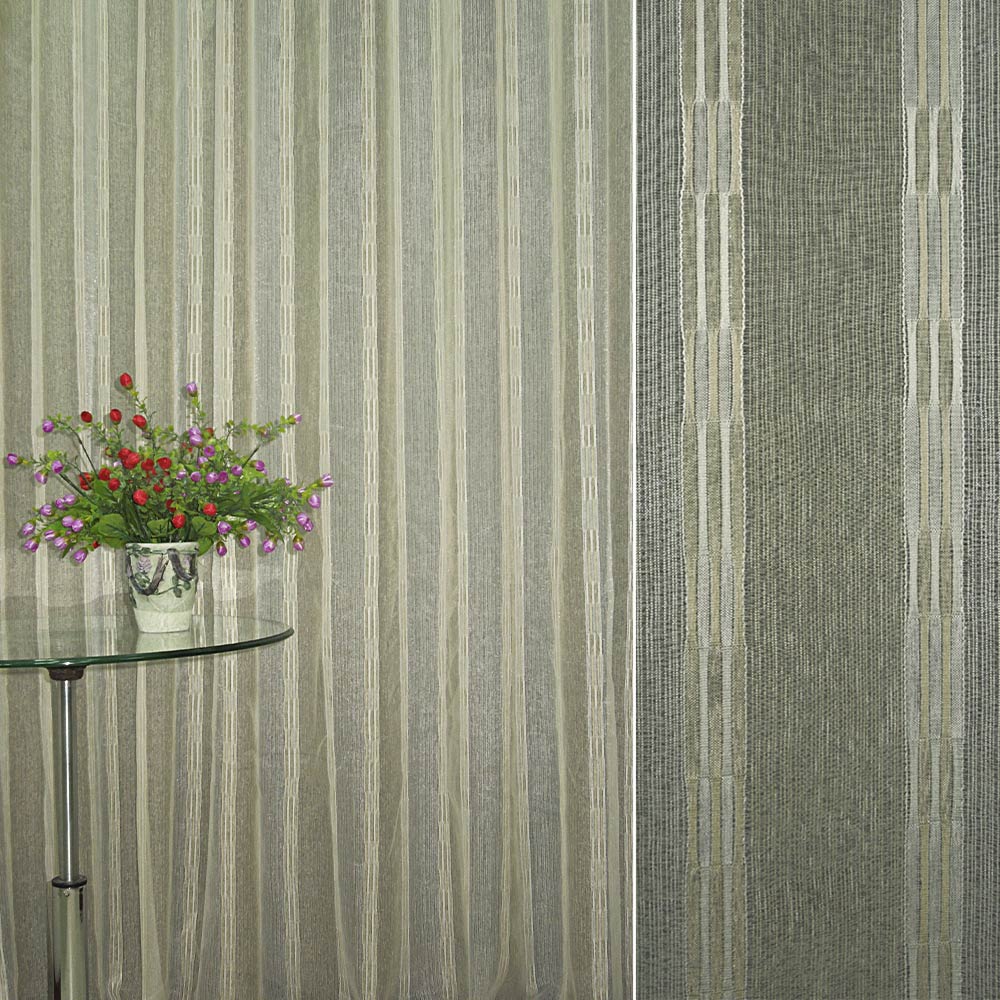 Лен гардинный в полоску тройную, молочно-ванильный, ш.300 купить в розницу и оптом