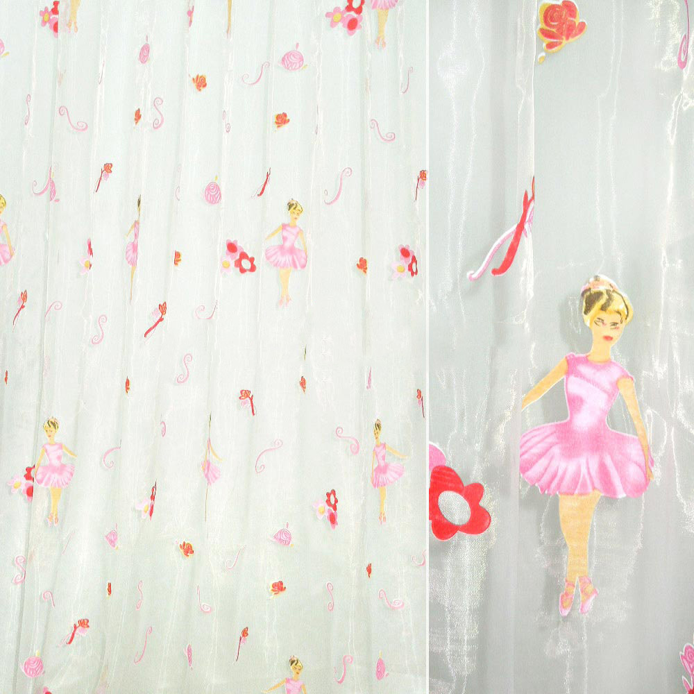 Органза тюль принт балерина в розовом платье, цветы, белая, ш.275 купить в розницу и оптом