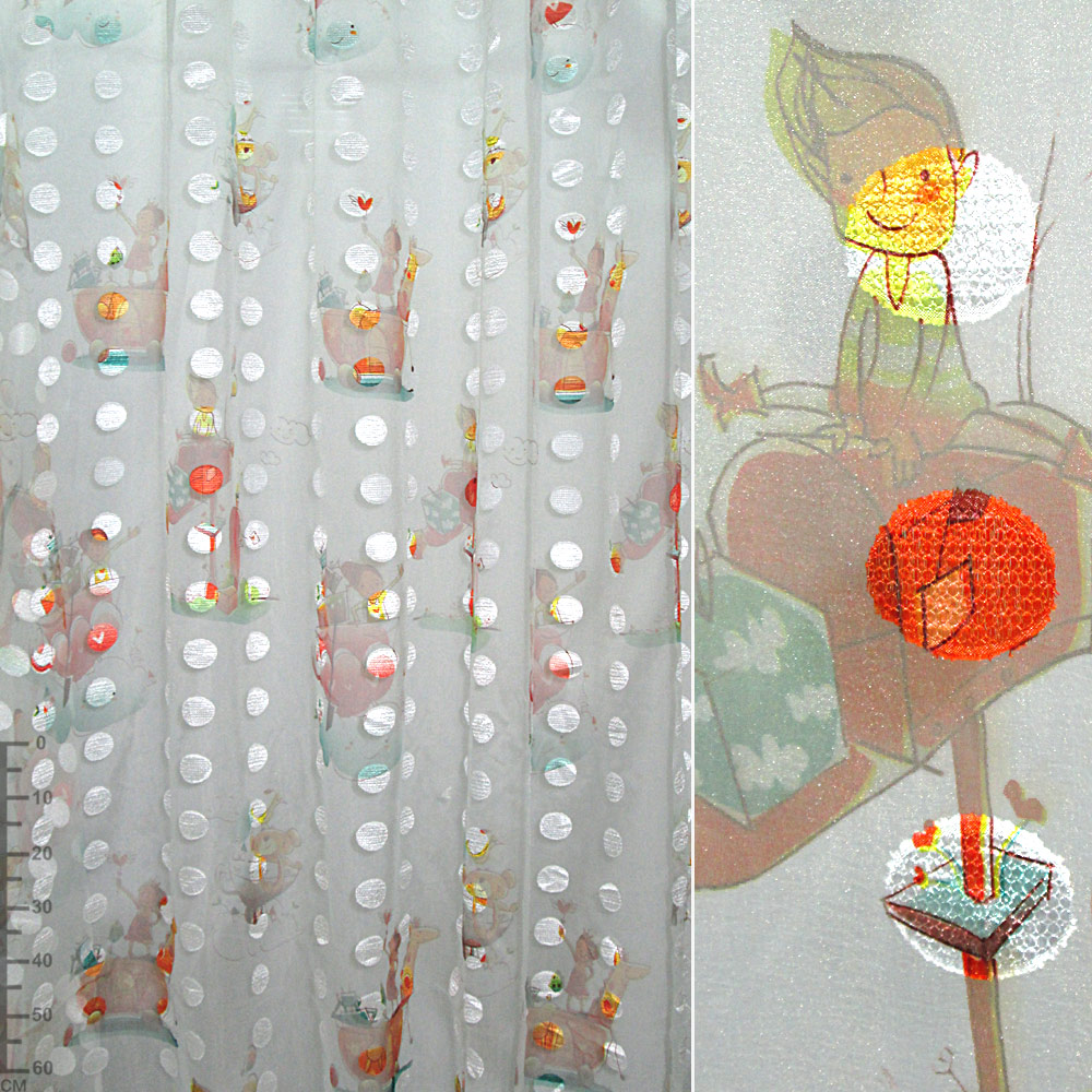 Органза жаккардовая тюль овалы атласные белые, принт дети терракотовый, белая, ш.280 купить в розницу и оптом