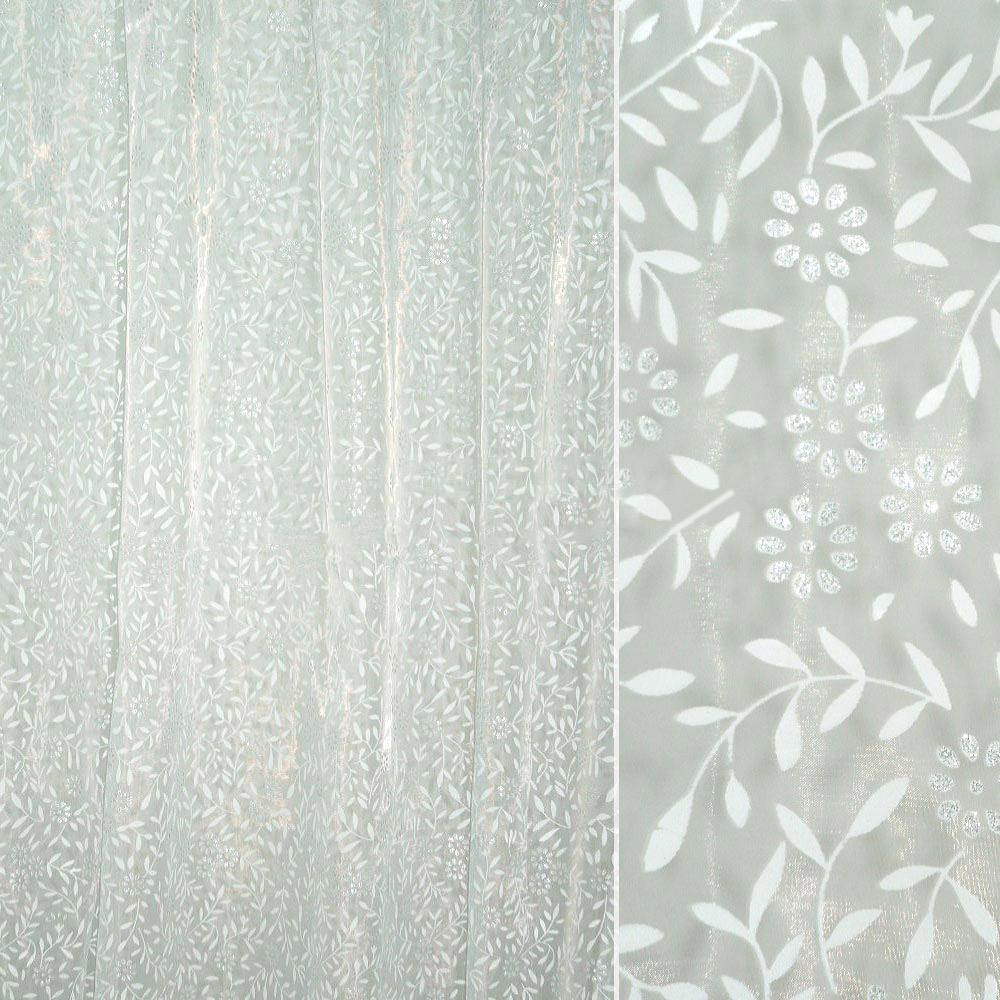 Органза тюль принт веточки и цветы белые с напылением, белая, ш.270 купить в розницу и оптом