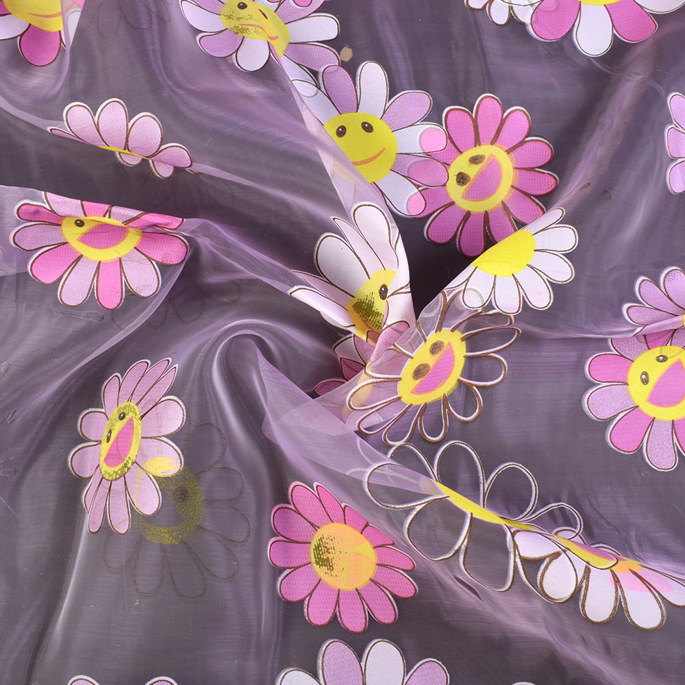 Органза тюль ромашки улыбающиеся сиреневая, ш.270 купить в розницу и оптом