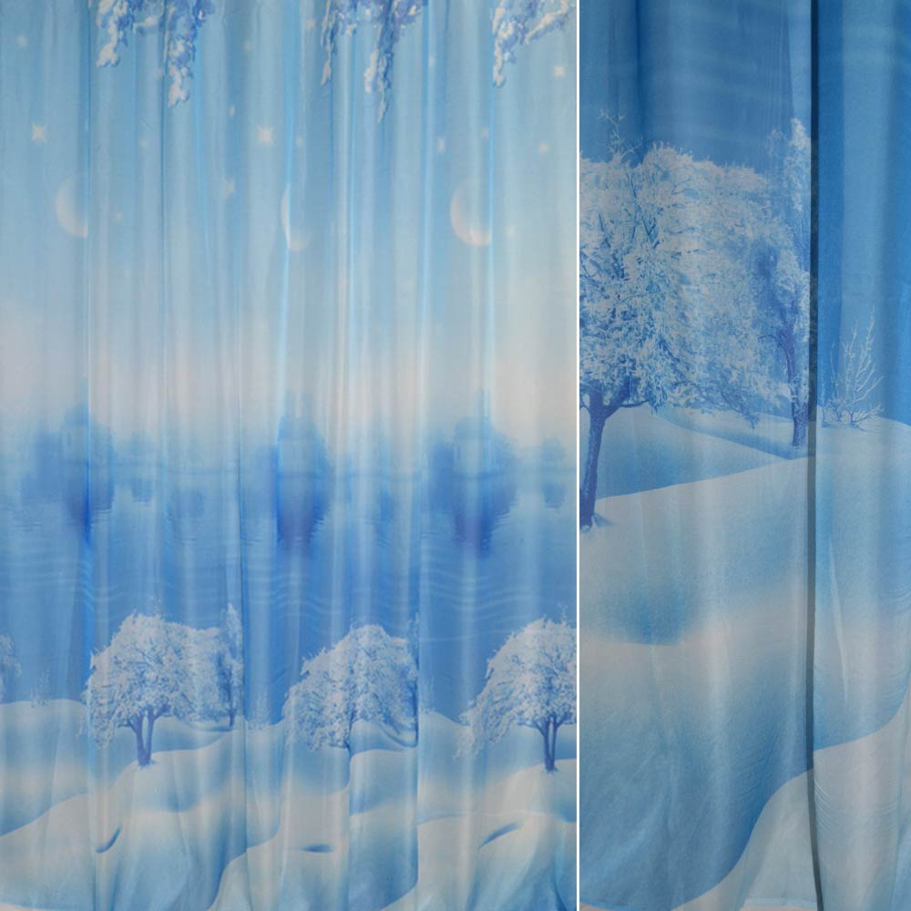 Вуаль тюль шифон фотопринт лес, церковь, голубая, ш.270 купить в розницу и оптом