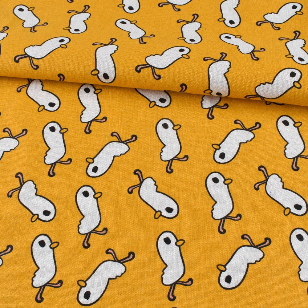 Деко лен птички белые, желтый, ш.150 купить в розницу и оптом