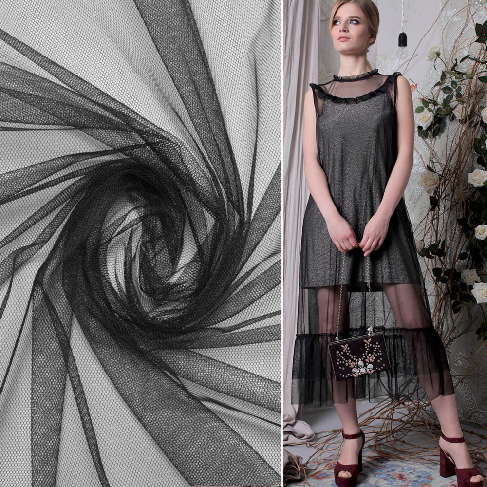 Сетка мягкая тонкая черная ш.160. Состав ткани: Нейлон-100. Плотность ткани: 25 г/м.кв. Страна производитель: Южная Корея. Тонкий, мягкий, эластичный полупрозрачный материал. Сетка практичная, легкая, хорошо пропускает воздух, легкая в обработке. Используется для пошива легких летних платьев, вечерних нарядов, аксессуаров, платков.