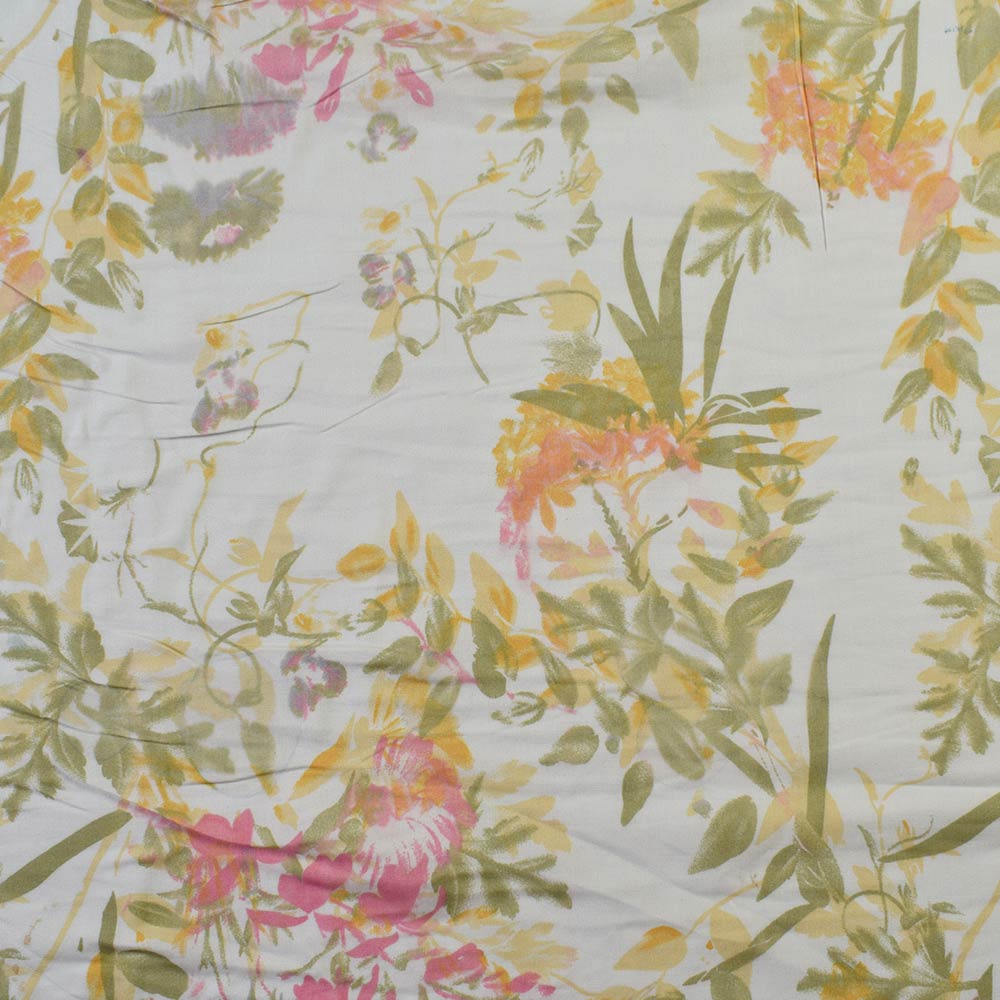 Вискоза белая, розовые цветы, зеленые листья (2сорт), ш.140 купить в розницу и оптом