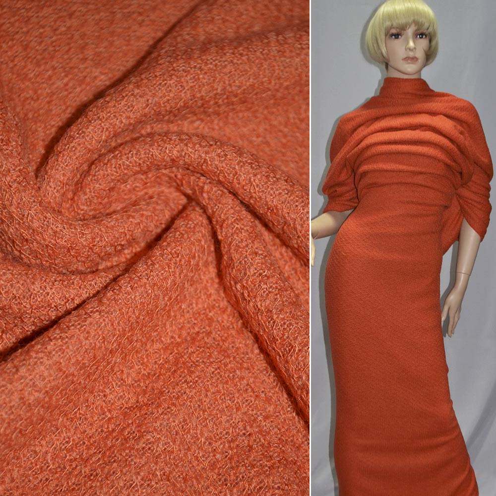 Трикотаж вязаный двухсторонний акриловый оранжево-красный ш.170 купить в розницу и оптом