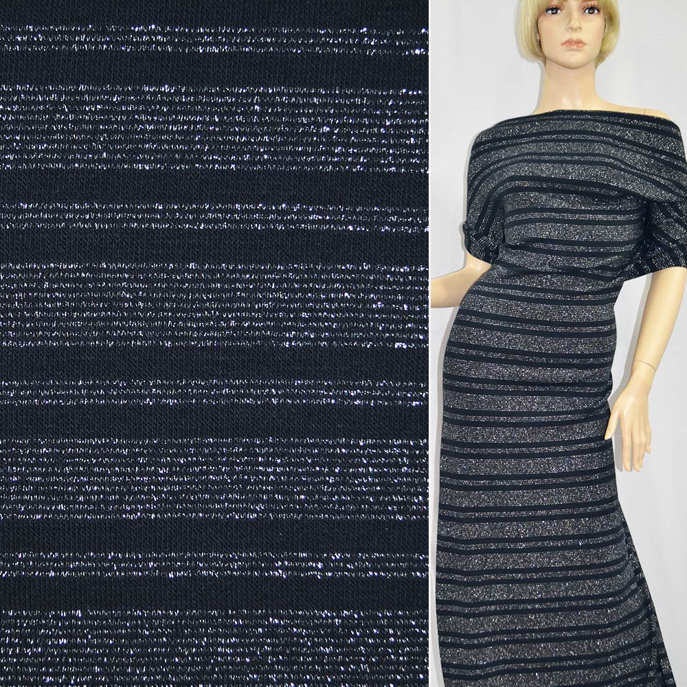 Трикотаж акриловый серебристые полосы из люрекса синий ш.155 купить в розницу и оптом