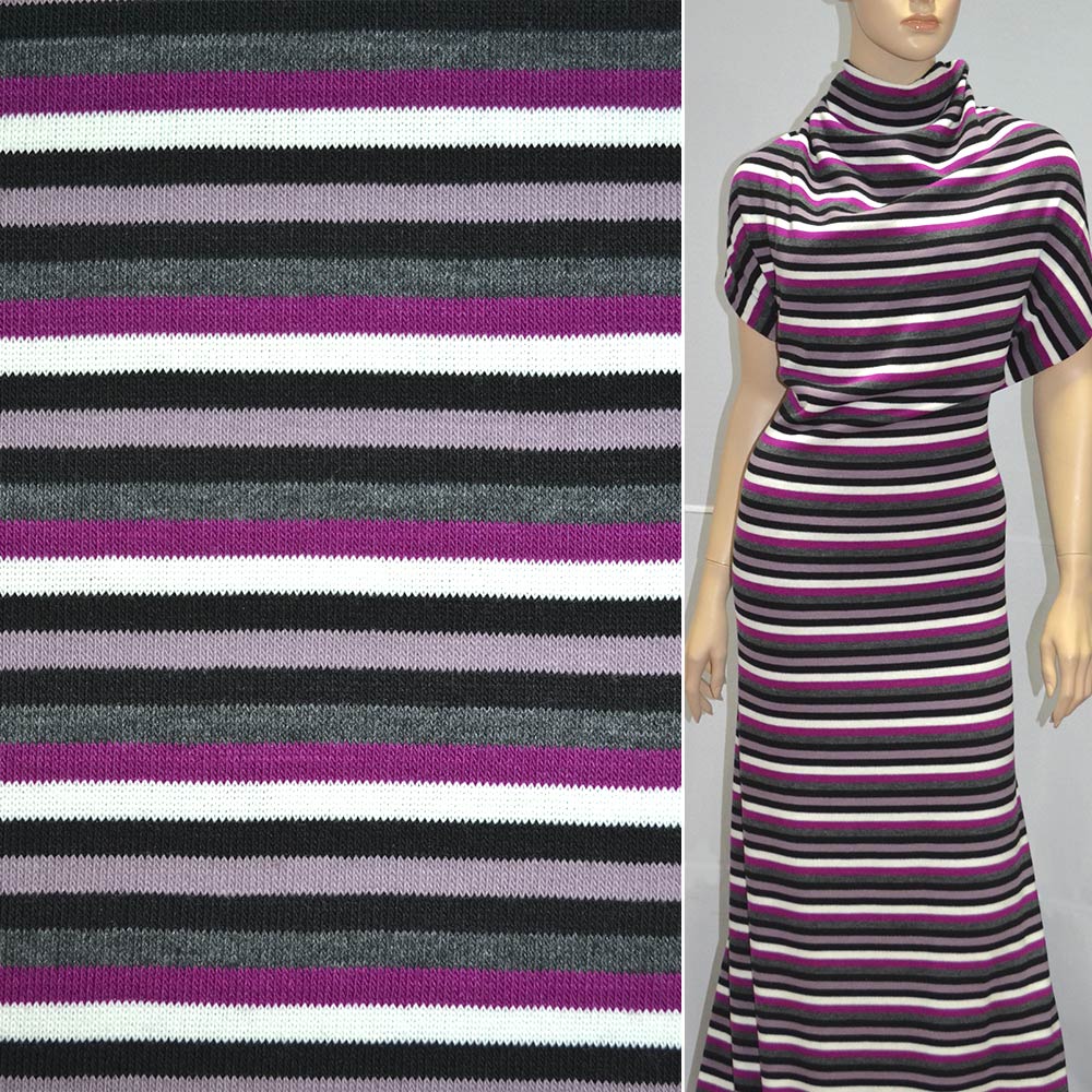 Трикотаж акриловый серый в черно-белую, сиреневую полоску ш.150 купить в розницу и оптом