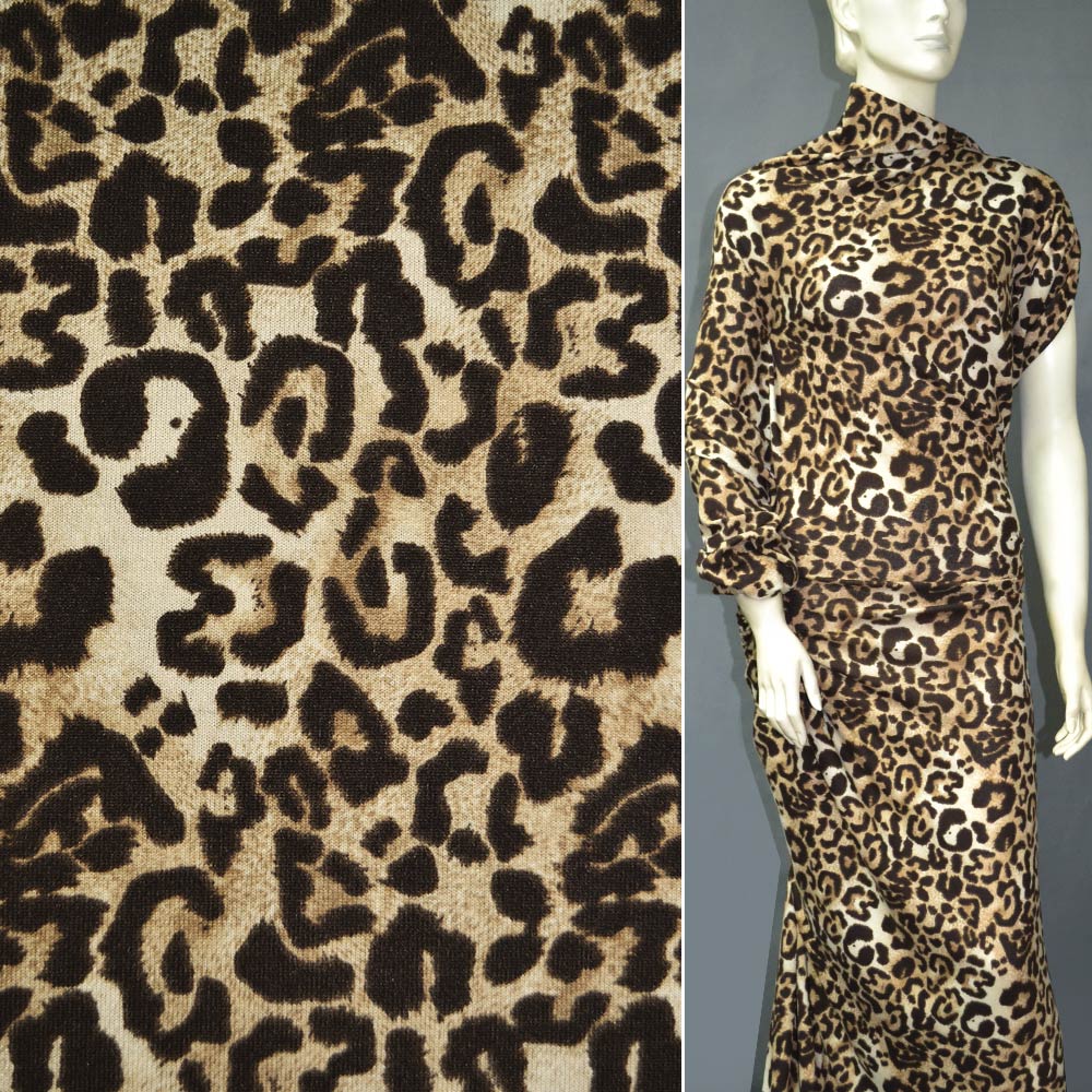 Трикотаж с леопардовым рисунком рыжий с коричневым ш.160 купить в розницу и оптом