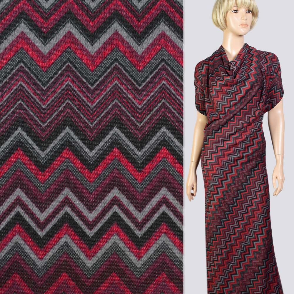 Трикотаж серый черно-красный зигзаг, ш.170 купить в розницу и оптом