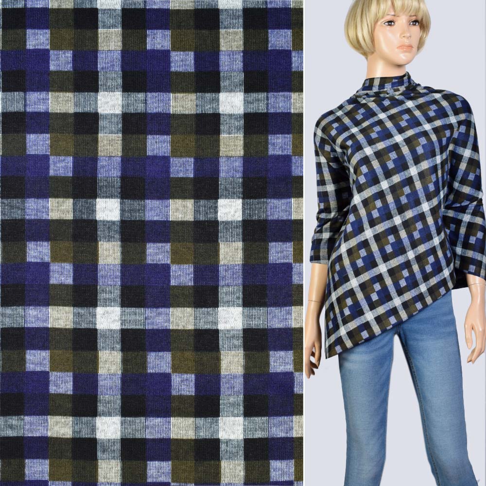 Трикотаж синий в черно-серую клетку, ш.160. Состав ткани: Акрил-80, Вискоза-18, Эластан-2. Плотность ткани: 202 г/м.кв. Страна производитель: Южная Корея. Трикотаж - это мягкая плотная материя, не прозрачная. Приятная на ощупь, комфортная в носке. Благодаря содержанию синтетических материй, материал более износостойкий и надолго сохраняет свой первоначальный вид. Ткань отличается своей приятной текстурой, хорошей растяжимостью, практически не мнется. Трикотаж достаточно простой в уходе. Используется для пошива платьев, спортивных костюмов, легких жакетов, поло, футболок и многого другого.