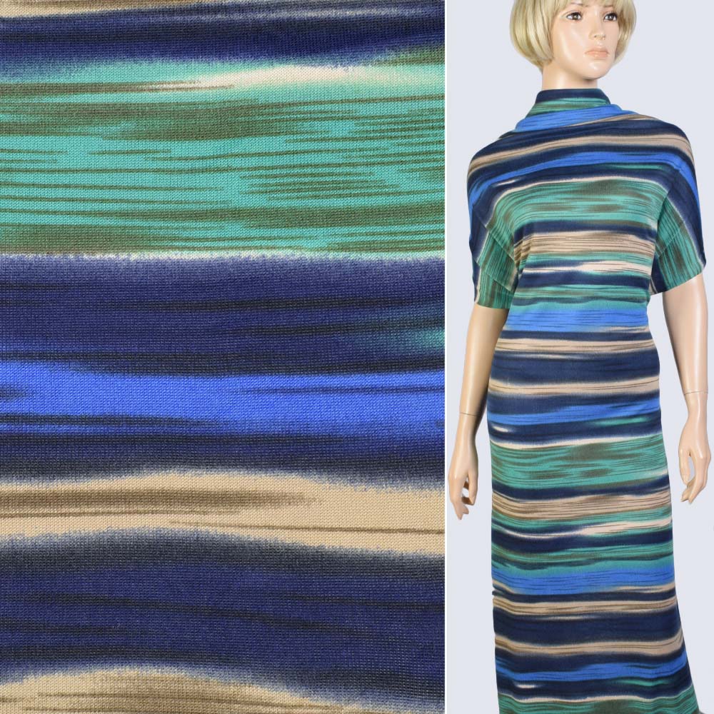 Трикотаж в синюю, зеленую размытую полоску, ш.160 купить в розницу и оптом
