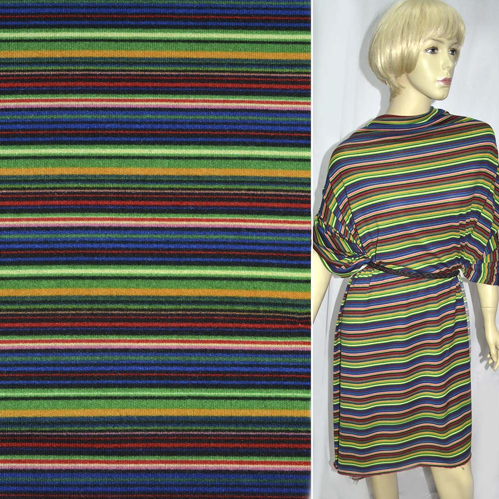 Трикотаж в зеленые, синие, желтые полоски ш.170 купить в розницу и оптом