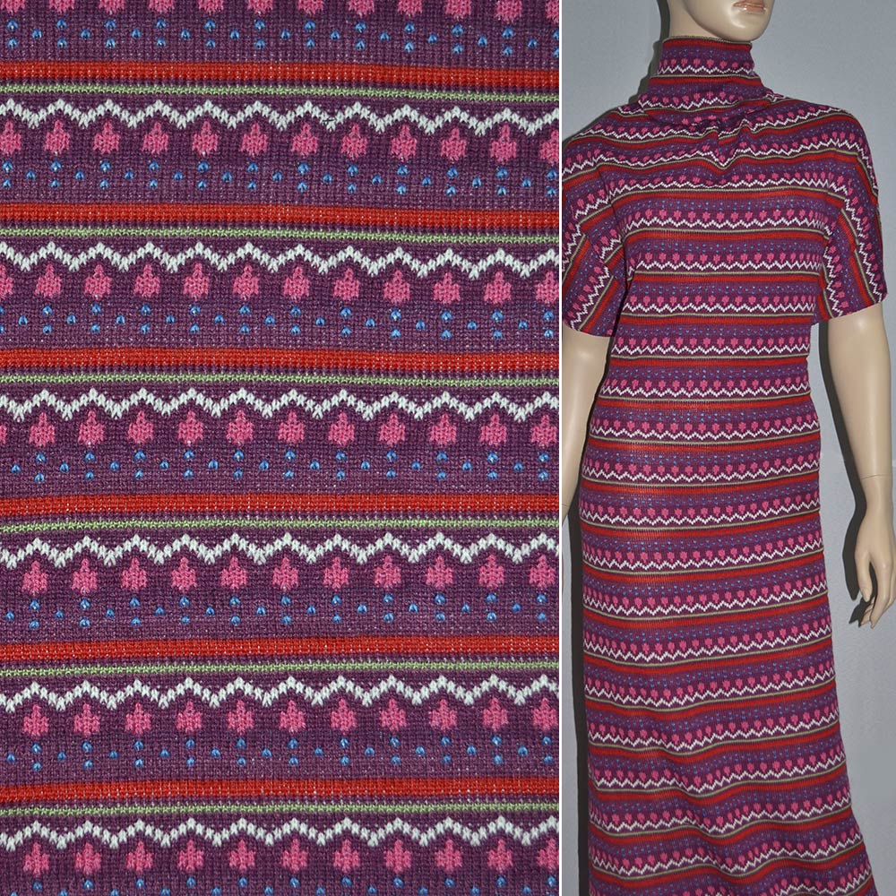 Трикотаж вязаный в фиолетово-розовые полоски с белым зигзагом ш.95 купить в розницу и оптом