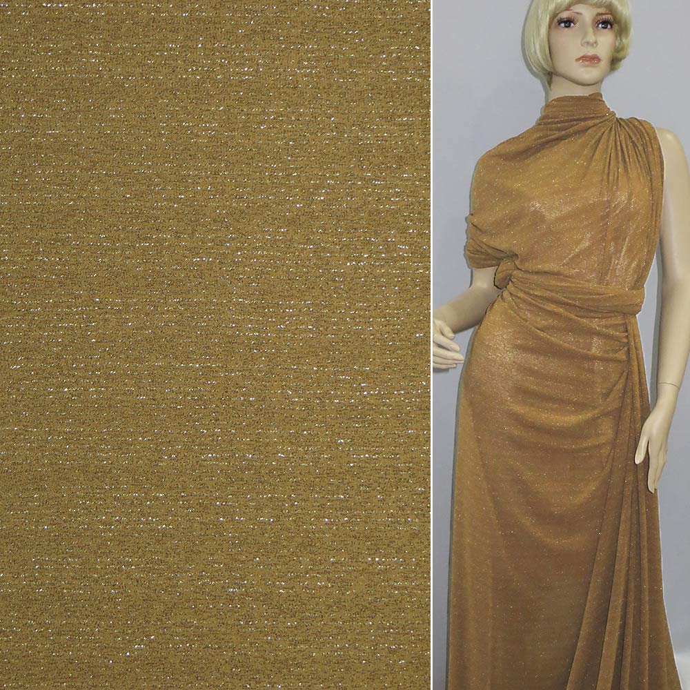 Трикотаж с метанитью коричневое светлое. Состав ткани: Метанить-20, Полиэстер-80. Плотность ткани: 229 г/м.кв. Страна производитель: Германия. Трикотаж - это мягкая плотная материя, не прозрачная. Приятная на ощупь, комфортная в носке. Благодаря содержанию синтетических материй, материал более износостойкий и надолго сохраняет свой первоначальный вид. Ткань отличается своей приятной текстурой, хорошей растяжимостью, практически не мнется. Трикотаж достаточно простой в уходе. Используется для пошива платьев, спортивных костюмов, легких жакетов, поло, футболок и многого другого.