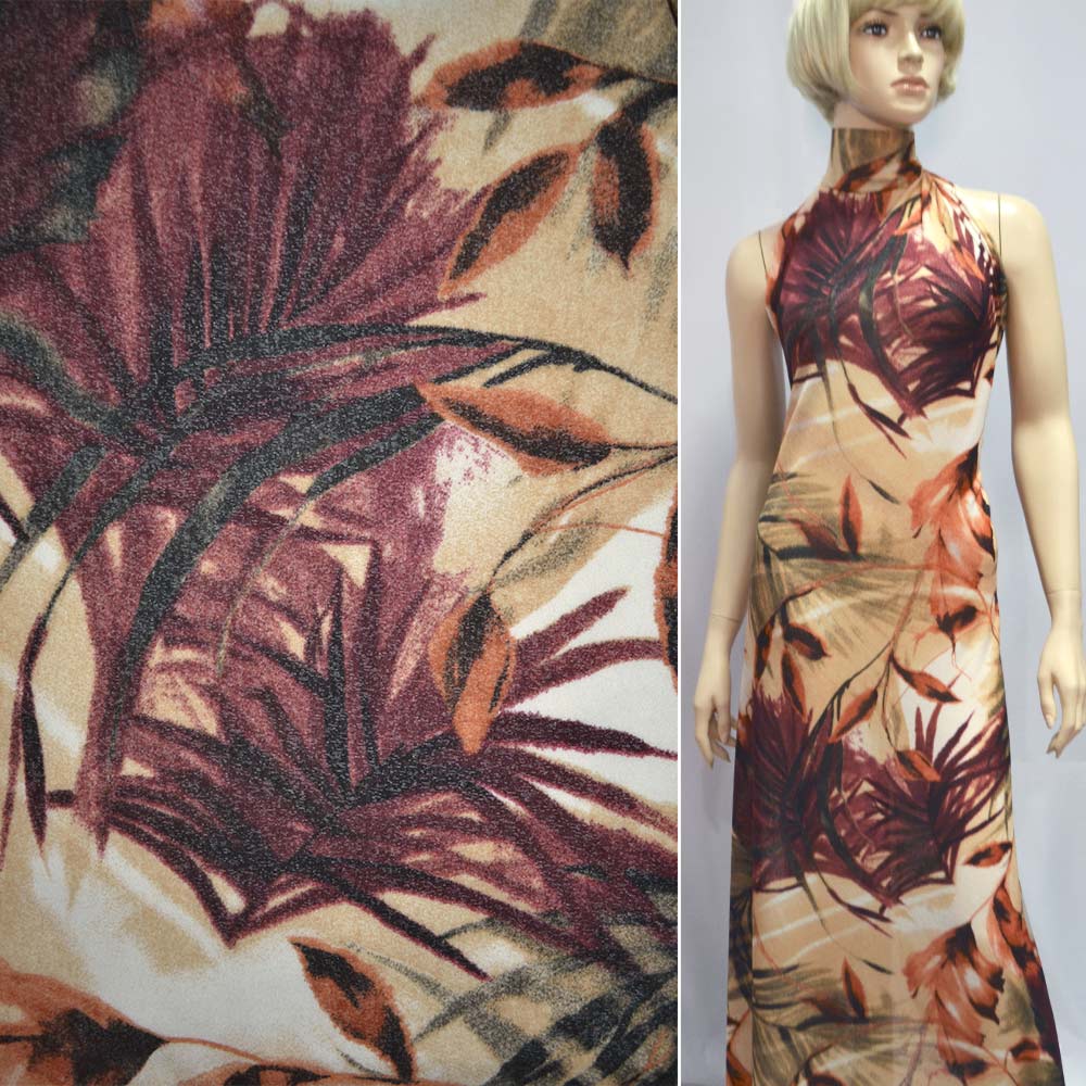 Трикотаж стрейч песочный с абстрактным рисунком ш.155. Состав ткани: Полиэстер-98, Эластан-2. Плотность ткани: 229 г/м.кв. Страна производитель: Германия. Трикотаж - это мягкая плотная материя, не прозрачная. Приятная на ощупь, комфортная в носке. Благодаря содержанию синтетических материй, материал более износостойкий и надолго сохраняет свой первоначальный вид. Ткань отличается своей приятной текстурой, хорошей растяжимостью, практически не мнется. Трикотаж достаточно простой в уходе. Используется для пошива платьев, спортивных костюмов, легких жакетов, поло, футболок и многого другого.