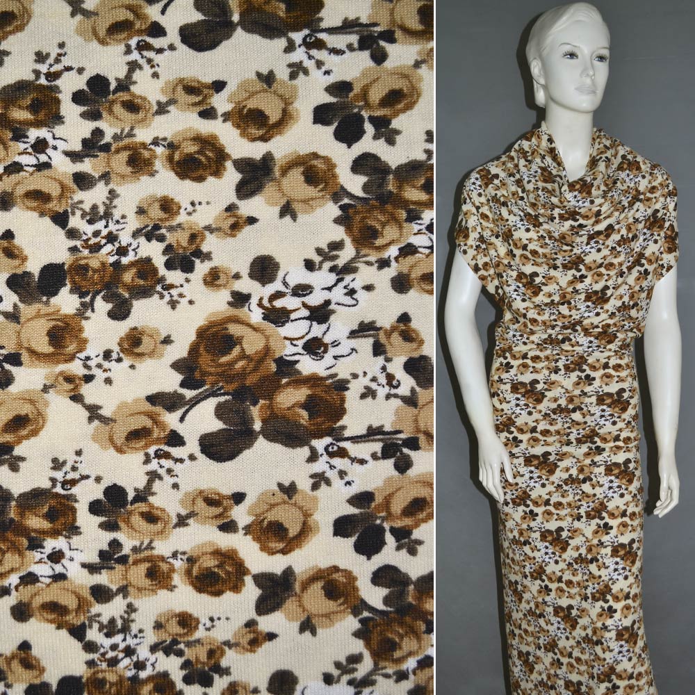 Трикотаж бежевый светлый с коричневыми розами ш.160 купить в розницу и оптом
