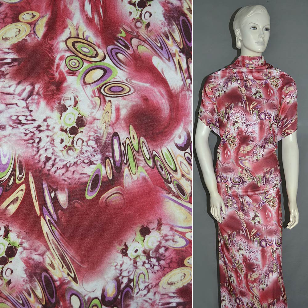 Трикотаж бордовый светлый с разноцветной абстракцией ш.150 купить в розницу и оптом