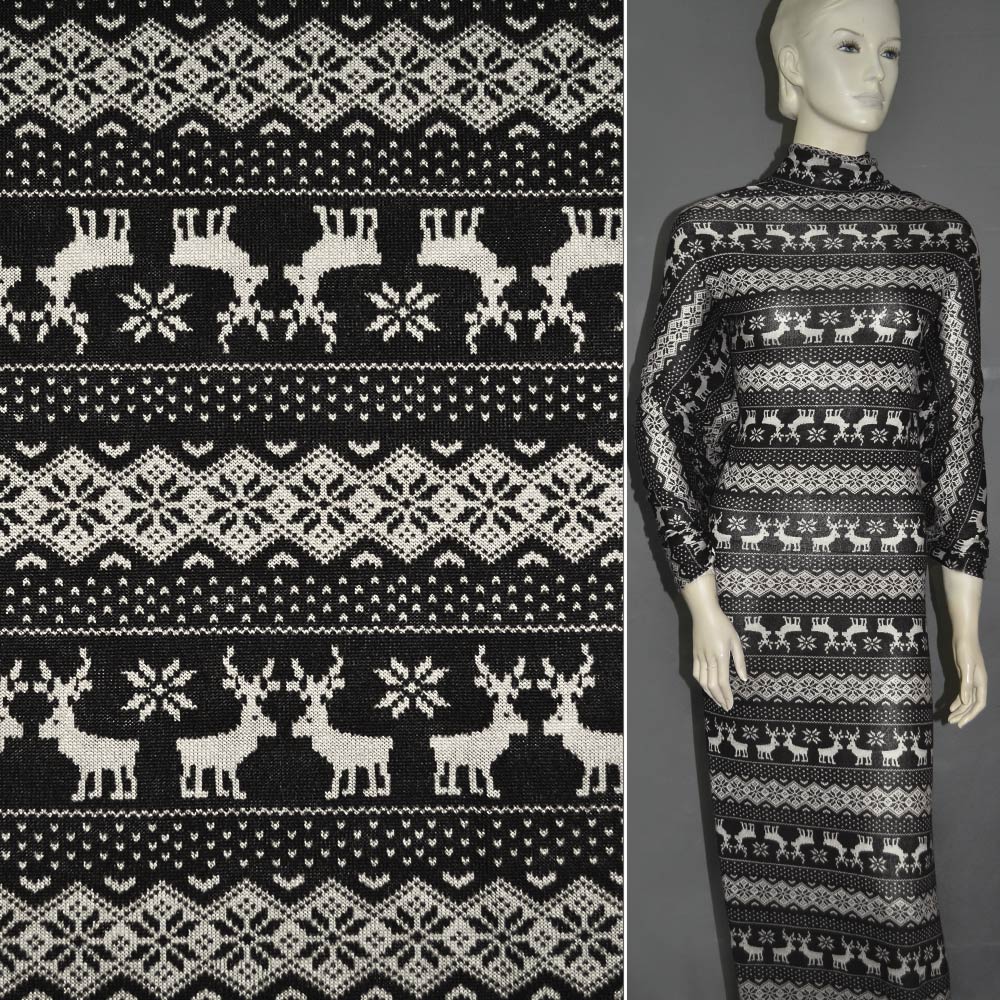 Трикотаж черный с белым орнаментом и оленями ш.176 купить в розницу и оптом