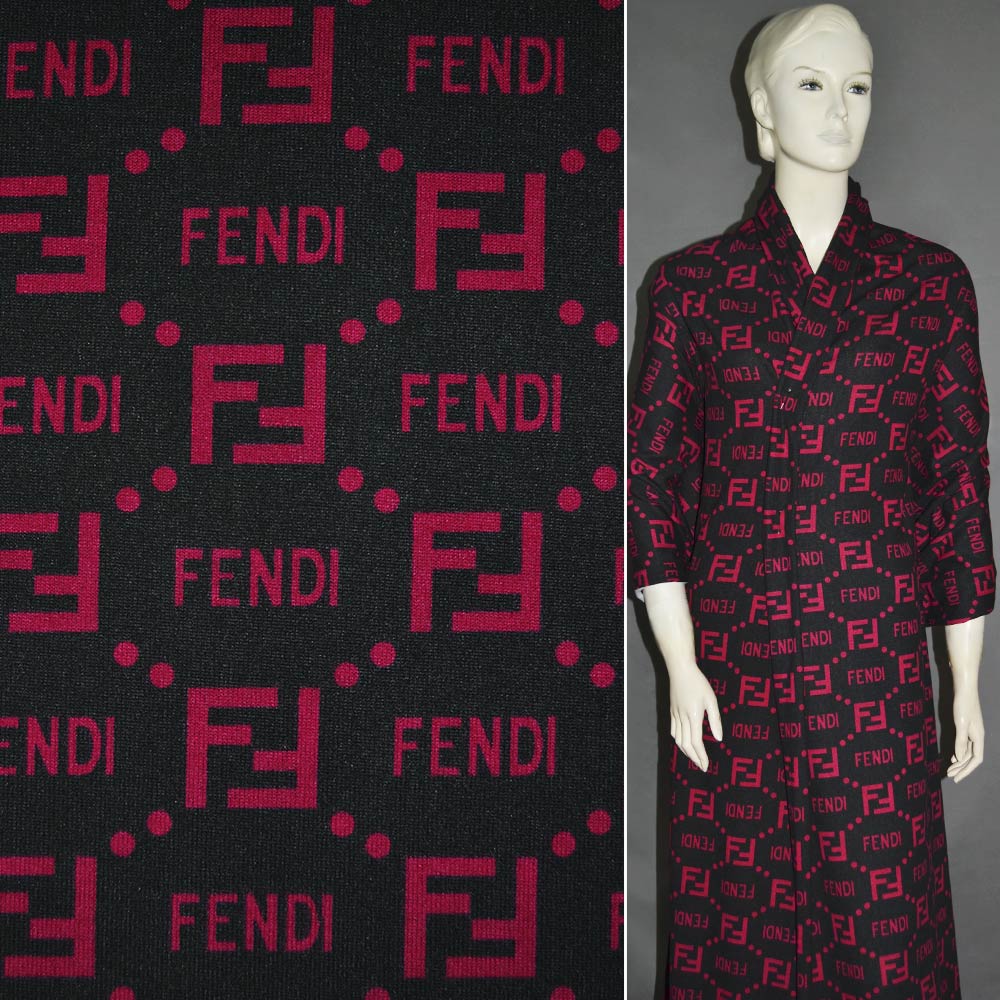 Трикотаж черный с малиновым принтом FENDI ш.160 купить в розницу и оптом