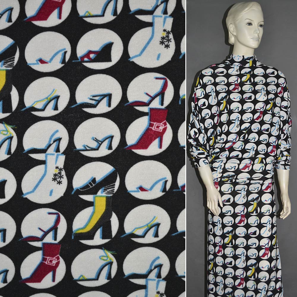 Трикотаж черный в белые круги, обувь ш.160 купить в розницу и оптом