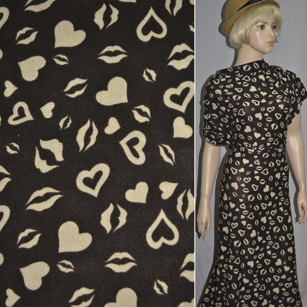 Трикотаж коричневый с сердцами и губами ш.170 купить в розницу и оптом