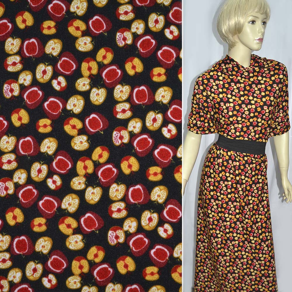 Трикотаж коричневый темный с желто-красными яблоками ш.160 купить в розницу и оптом