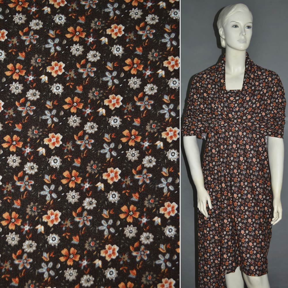 Трикотаж коричневый в оранжевые цветы ш.160 купить в розницу и оптом