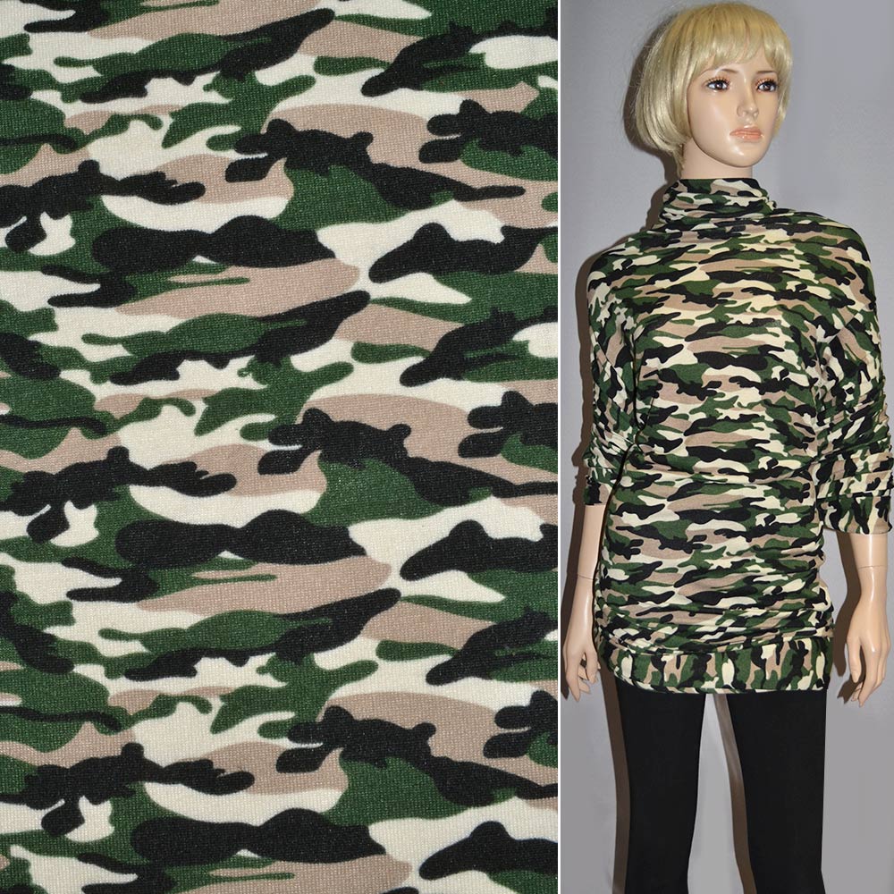 Трикотаж молочно-зелено-черный камуфляж ш.170 купить в розницу и оптом