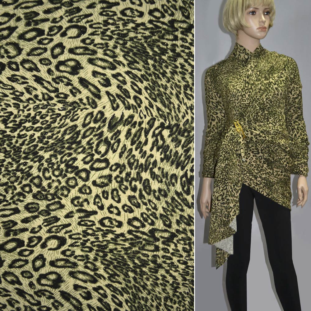 Трикотаж песочно-коричнево-зеленый принт леопард ш.160 купить в розницу и оптом