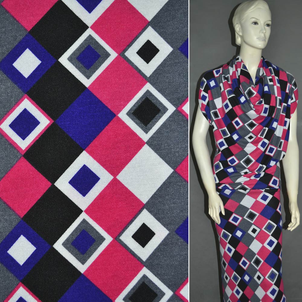 Трикотаж серый в малиново-синие ромбы ш.160 купить в розницу и оптом