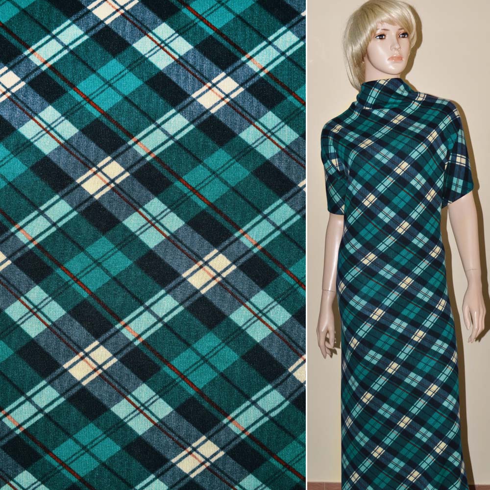 Трикотаж в бирюзово-кремовые и темно-синие ромбы ш.170. Состав ткани: Полиакрил-85, Шерсть-10, Эластан-5. Плотность ткани: 170 г/м.кв. Страна производитель: Южная Корея. Трикотаж - это мягкая плотная материя, не прозрачная. Приятная на ощупь, комфортная в носке. Благодаря содержанию синтетических материй, материал более износостойкий и надолго сохраняет свой первоначальный вид. Ткань отличается своей приятной текстурой, хорошей растяжимостью, практически не мнется. Трикотаж достаточно простой в уходе. Используется для пошива платьев, спортивных костюмов, легких жакетов, поло, футболок и многого другого.