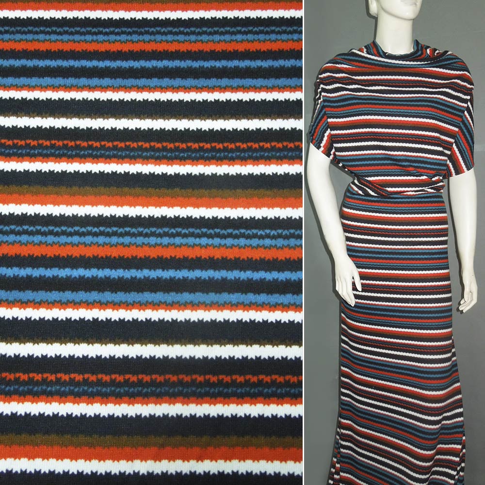 Трикотаж в разноцветные полоски бирюзовые, алые, черно-белые ш.160. Состав ткани: Полиакрил-85, Шерсть-10, Эластан-5. Плотность ткани: 191 г/м.кв. Страна производитель: Южная Корея. Трикотаж - это мягкая плотная материя, не прозрачная. Приятная на ощупь, комфортная в носке. Благодаря содержанию синтетических материй, материал более износостойкий и надолго сохраняет свой первоначальный вид. Ткань отличается своей приятной текстурой, хорошей растяжимостью, практически не мнется. Трикотаж достаточно простой в уходе. Используется для пошива платьев, спортивных костюмов, легких жакетов, поло, футболок и многого другого.