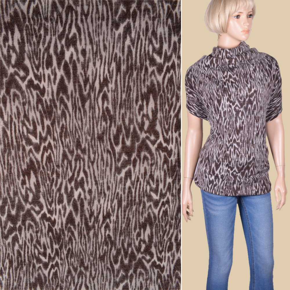 Трикотаж с мохером коричнево-молочный с разводами ш.143 купить в розницу и оптом