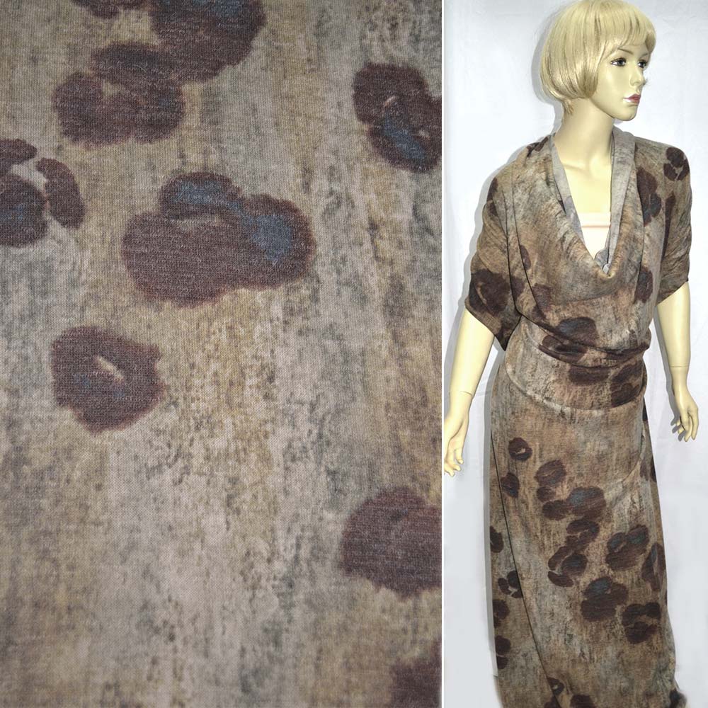 Трикотаж с шерстью бежево-серый в бордовые пятна ш.145. Состав ткани: Полиакрил-77, Полиамид-15, Шерсть-8. Плотность ткани: 165 г/м.кв. Страна производитель: Германия. Трикотаж - это мягкая плотная материя, не прозрачная. Приятная на ощупь, комфортная в носке. Благодаря содержанию синтетических материй, материал более износостойкий и надолго сохраняет свой первоначальный вид. Наличие шерсти делает материал более теплым. Ткань отличается своей приятной текстурой, хорошей растяжимостью, практически не мнется. Трикотаж достаточно простой в уходе. Используется для пошива платьев, спортивных костюмов, легких жакетов, поло, футболок и многого другого.