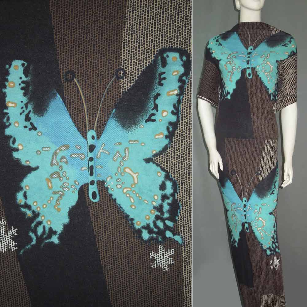 Трикотаж с шерстью бабочки бирюзовые (раппорт) коричневый точки ш.165 купить в розницу и оптом