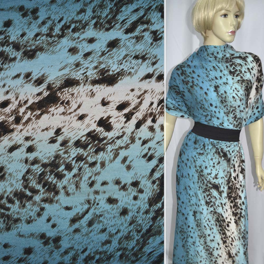 Трикотаж с шерстью принт леопард (раппорт) сине-голубой с коричневым ш.160 купить в розницу и оптом