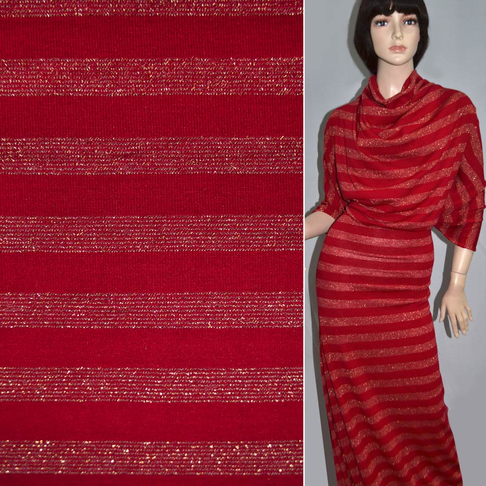 Трикотаж с шерстью в красный в полоску из золотистого люрекса ш.160 купить в розницу и оптом