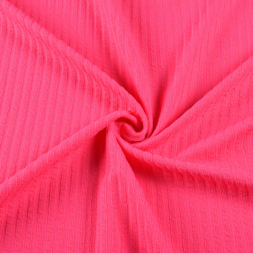 Трикотажное полотно малиновое светлое в жатую полоску ш.160. Состав ткани: Полиамид-60, Полиэстер-40. Плотность ткани: 220 г/м.кв. Страна производитель: Южная Корея. Трикотаж - это мягкая плотная материя, не прозрачная. Приятная на ощупь, комфортная в носке. Благодаря содержанию синтетических материй, материал более износостойкий и надолго сохраняет свой первоначальный вид. Ткань отличается своей приятной текстурой, хорошей растяжимостью, практически не мнется. Трикотаж достаточно простой в уходе. Используется для пошива платьев, спортивных костюмов, легких жакетов, поло, футболок и многого другого.