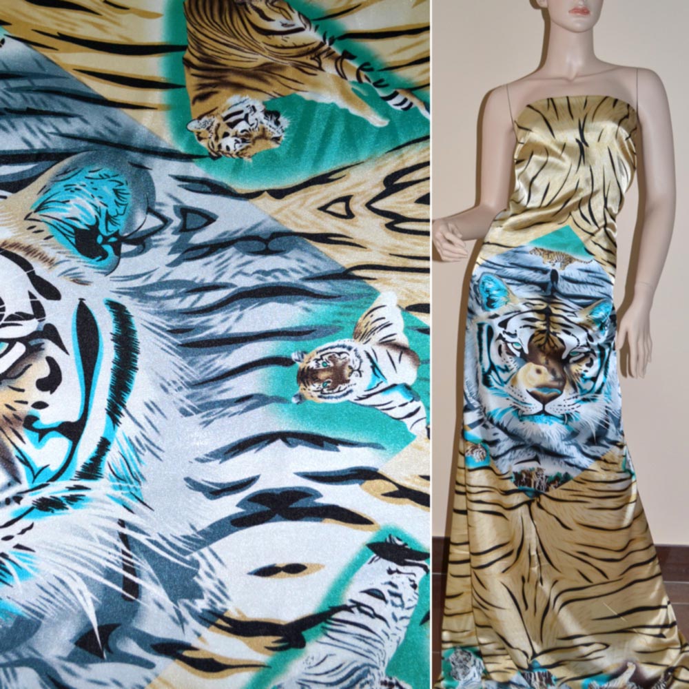 Атлас стрейч коричневый раппорт тигры ш.120 купить в розницу и оптом