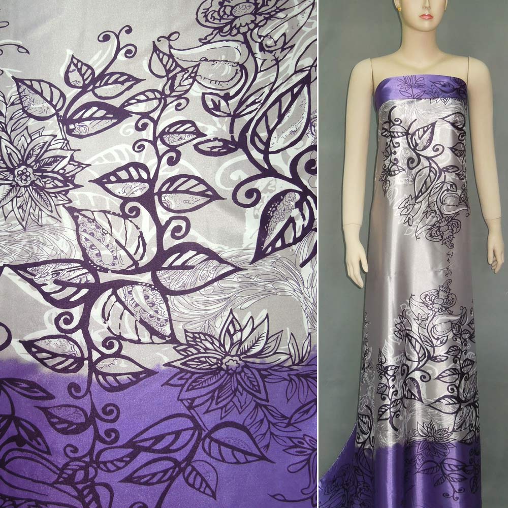 Атлас стрейч сиренево-серый, двухсторонний купон в цветы ш.150 купить в розницу и оптом