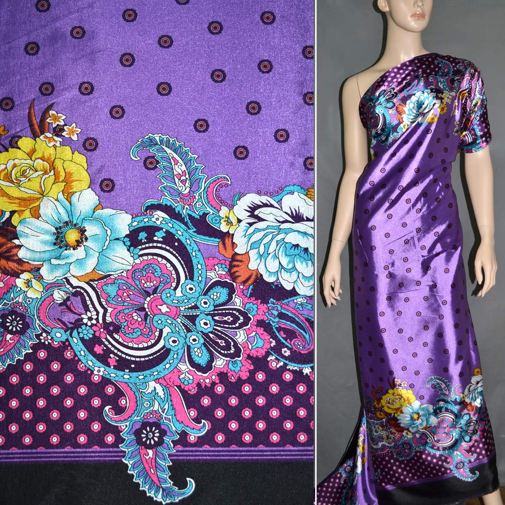 Атлас стрейч светло-сиреневый, двухсторонний купон в цветы ш.150 купить в розницу и оптом