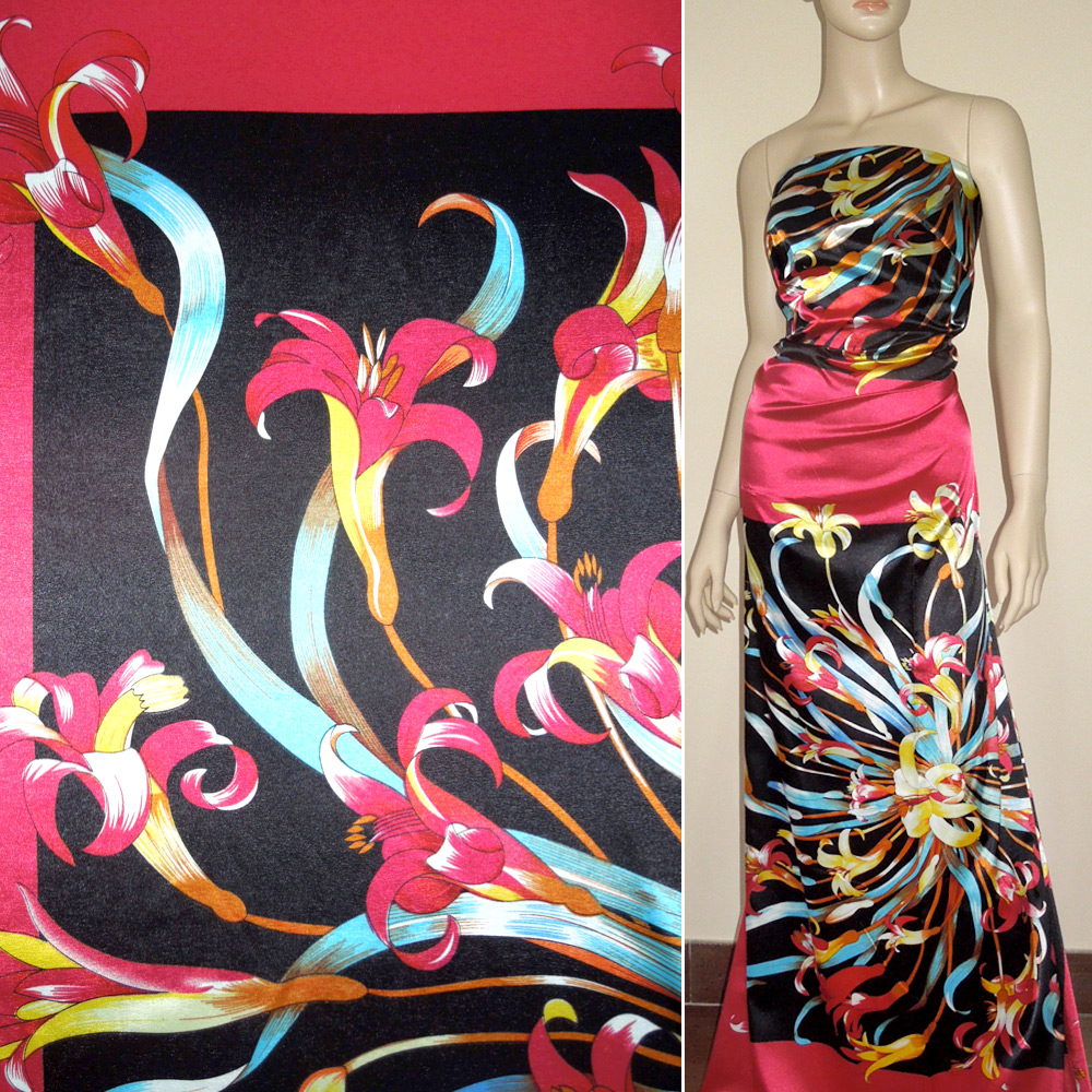 Атлас стрейч вишневый с черным (платки) ш.120 купить в розницу и оптом