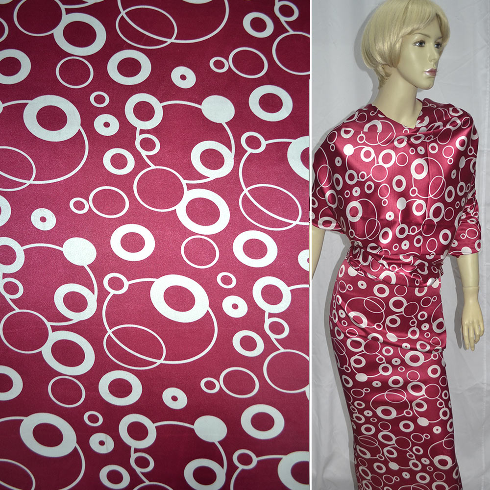 Атлас стрейч малиновый в белые овалы ш.120 купить в розницу и оптом