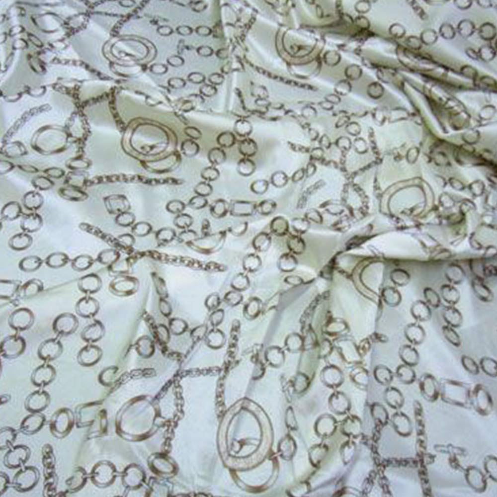 Атлас стрейч молочно-бежевый с цепями ш.120 купить в розницу и оптом